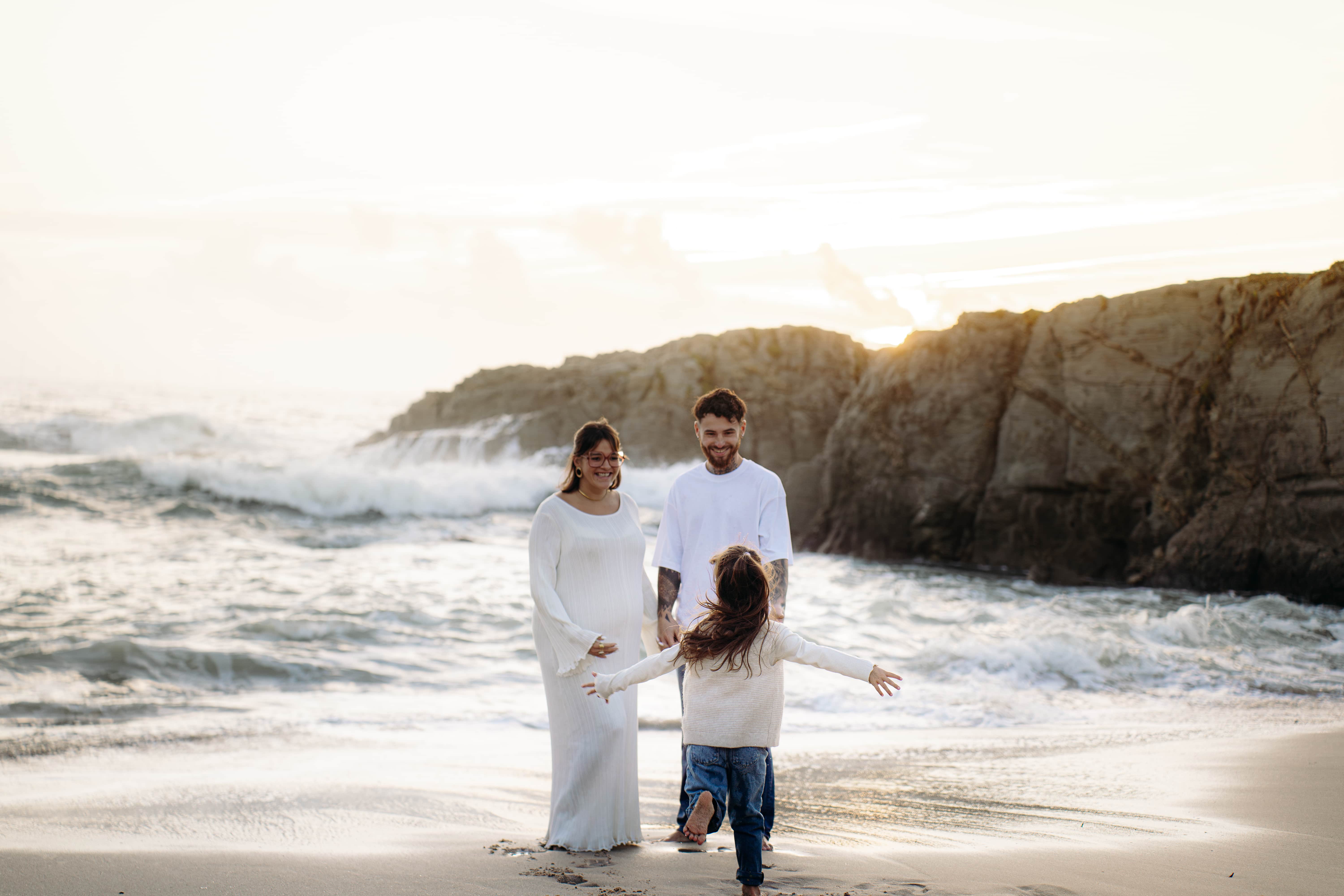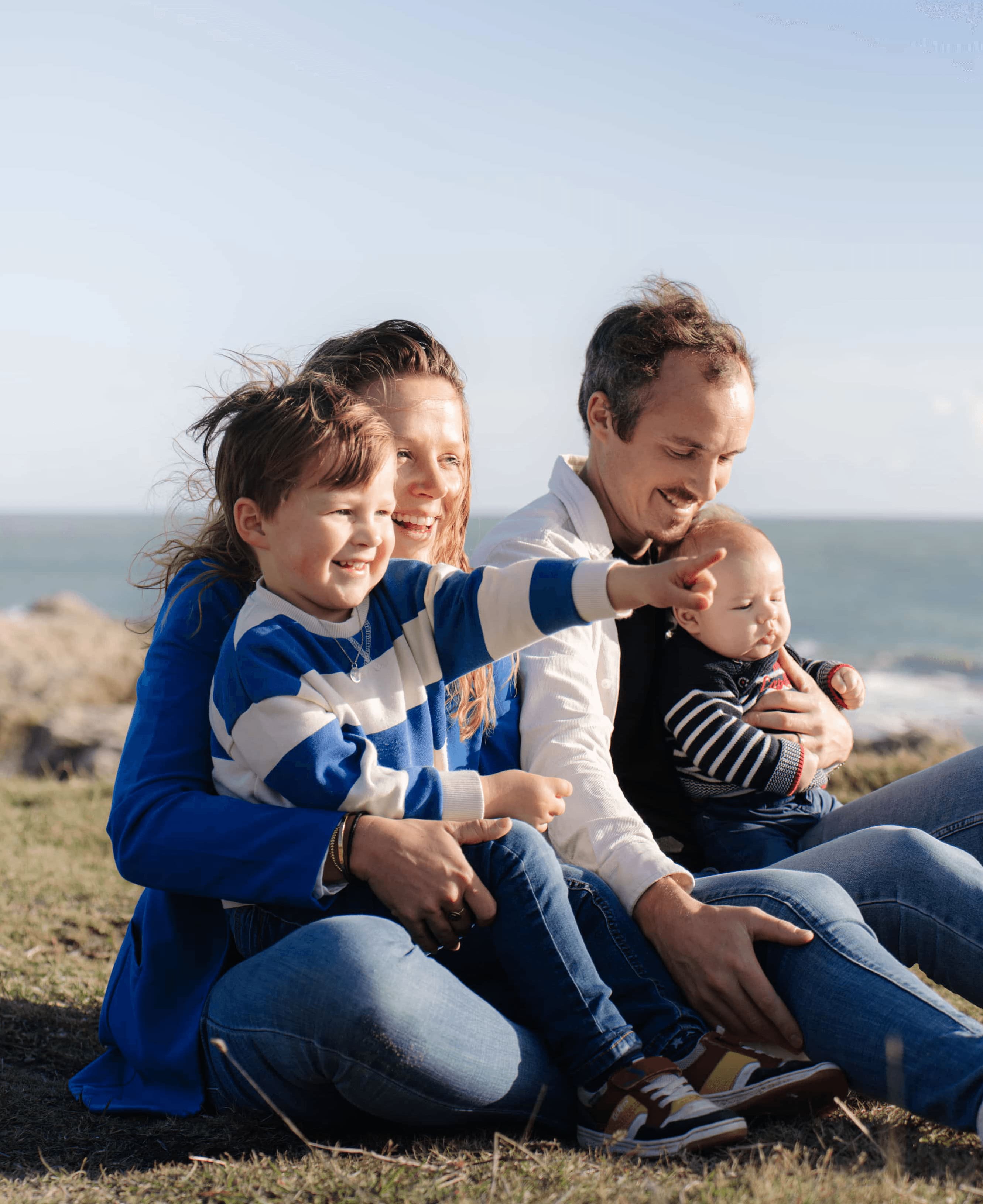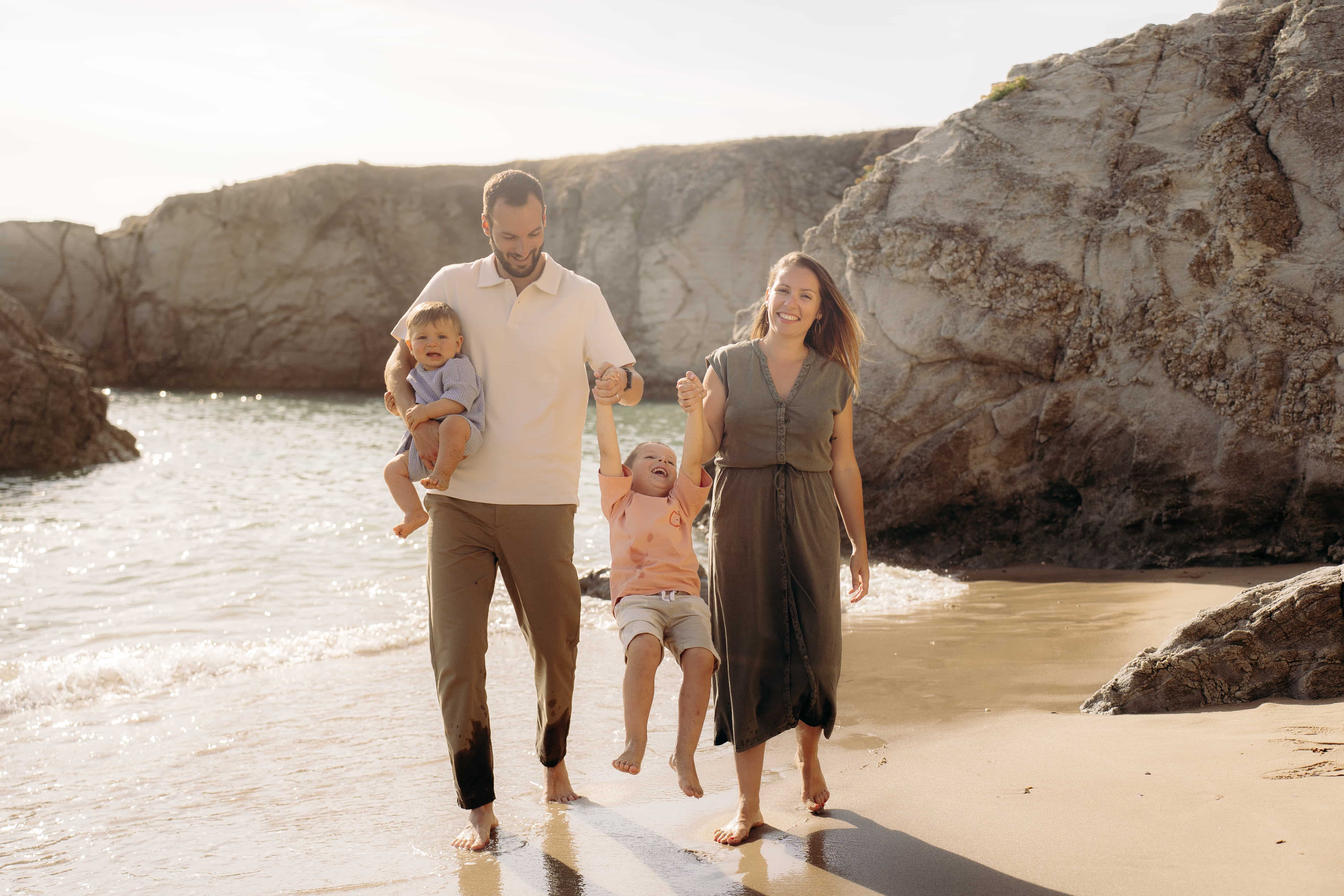Les familles, ce sont des instants qui bougent : ça court, ça saute, ça rit, ça se serre. Pendant la séance, je vous guide un peu pour que chacun trouve sa place, puis je vous laisse vivre votre moment. Les enfants m’emmènent souvent ailleurs: ils savent où se passe l’essentiel. Les cheveux voleront peut-être, les vêtements se saliront sûrement, mais vos images seront vraies, lumineuses et pleines de vie. Pas “parfaites”, juste authentiques, et c’est ce qui les rend précieuses.