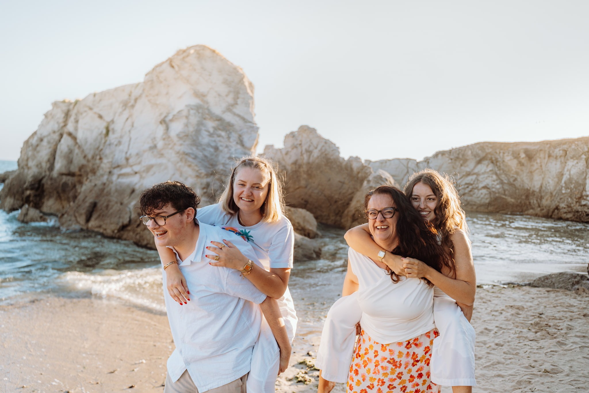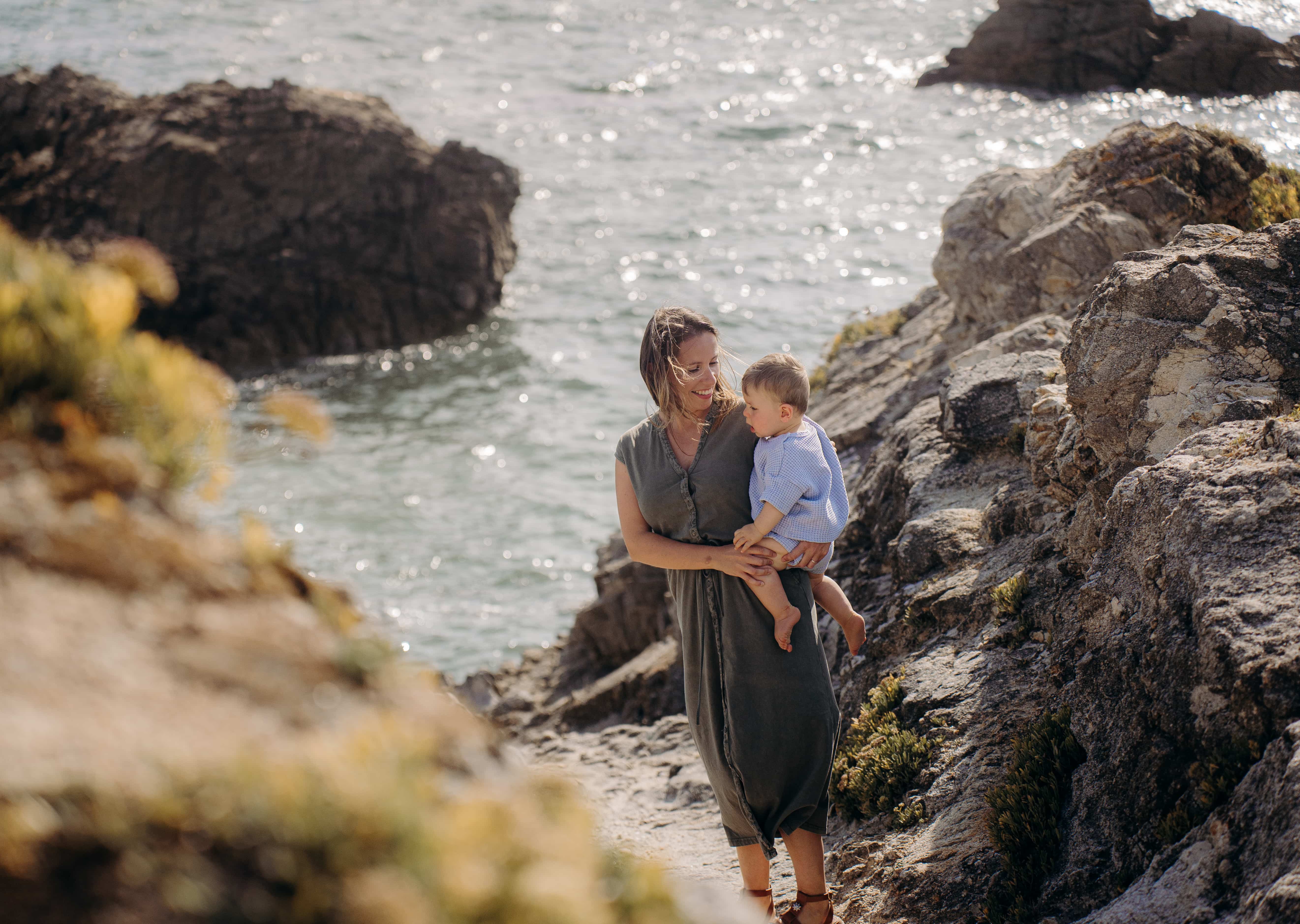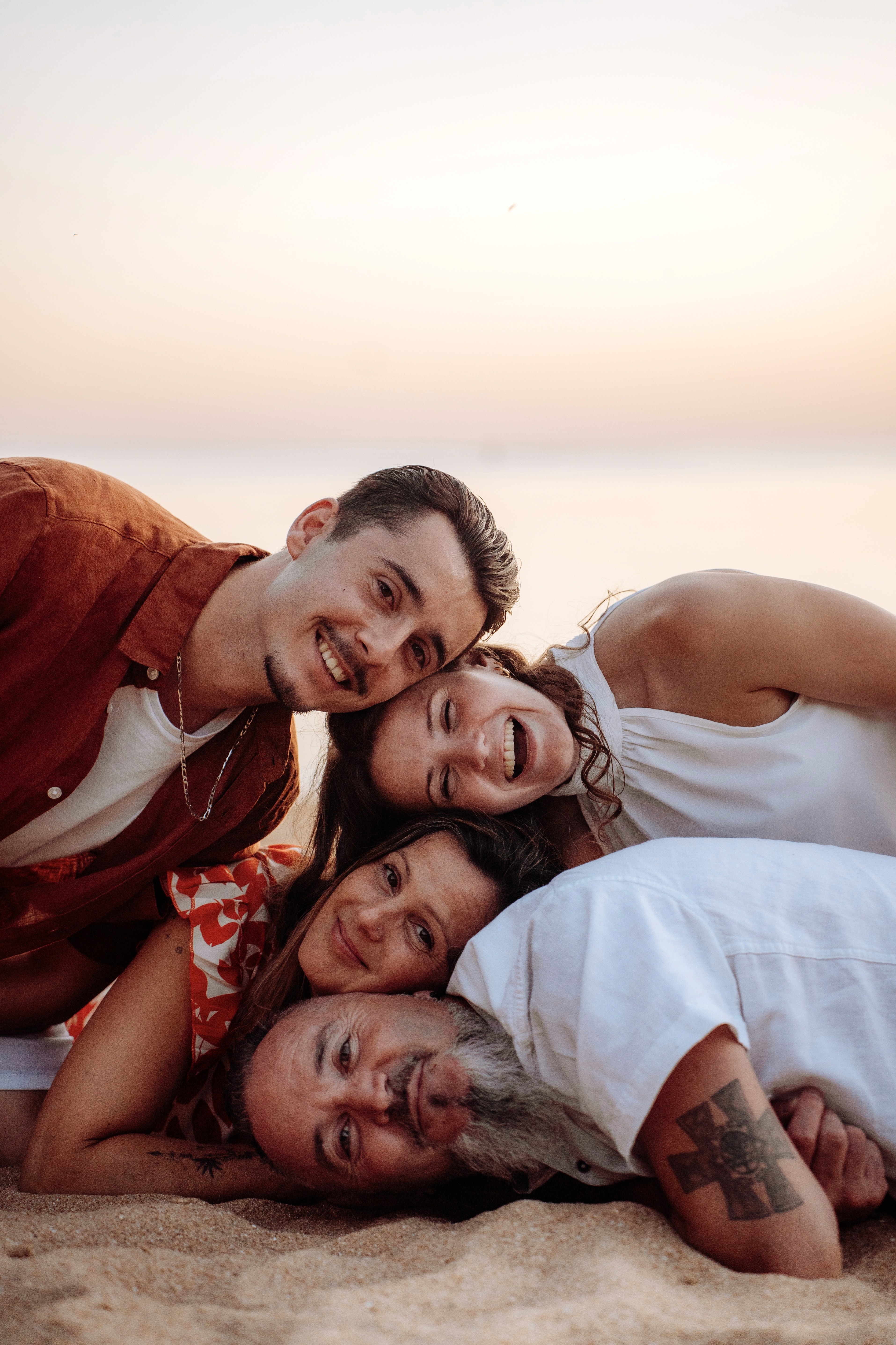 Les familles, ce sont des instants qui bougent : ça court, ça saute, ça rit, ça se serre. Pendant la séance, je vous guide un peu pour que chacun trouve sa place, puis je vous laisse vivre votre moment. Les enfants m’emmènent souvent ailleurs: ils savent où se passe l’essentiel. Les cheveux voleront peut-être, les vêtements se saliront sûrement, mais vos images seront vraies, lumineuses et pleines de vie. Pas “parfaites”, juste authentiques, et c’est ce qui les rend précieuses.